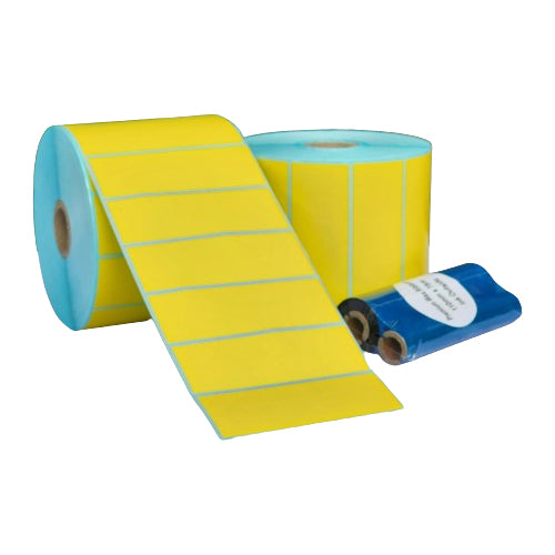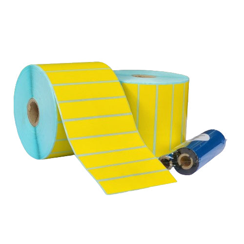 30 x 20 Solid Yellow Satin Barcode Labels Bundle with Premium Barcode Ribbon