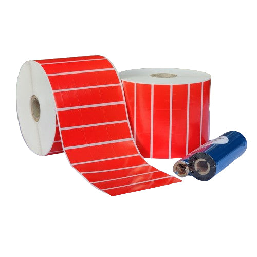 30 x 20 Solid Red Satin Barcode Labels Bundle with Premium Barcode Ribbon